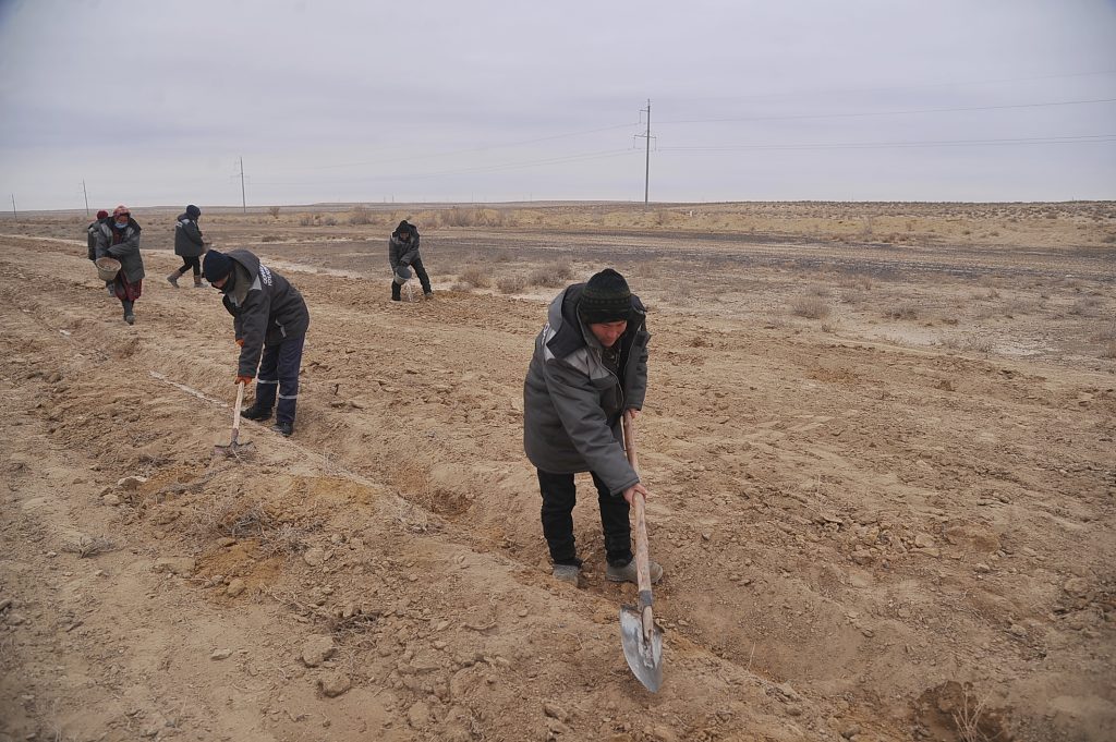 – Саксовул асосан кеч куз ёки қиш мавсумида экилади. Оролнинг қуриган тубида ҳам чўл ўсимликлари декабрь ойи охирларидан экила бошлайди, – деди ўзини “Қорақалпоғистон йўл кўкалам” УК да бўлим бошлиғи деб таништирган Абат исмли йигит. – Сабаби, унинг уруғи ёки ниҳоли қиш бўйи ёққан қор ва ёмғирларнинг сувини бўйига сингдириб ётади.